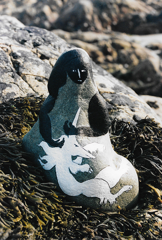 Vierge noire à la licorne - pierre peinte - Raâk